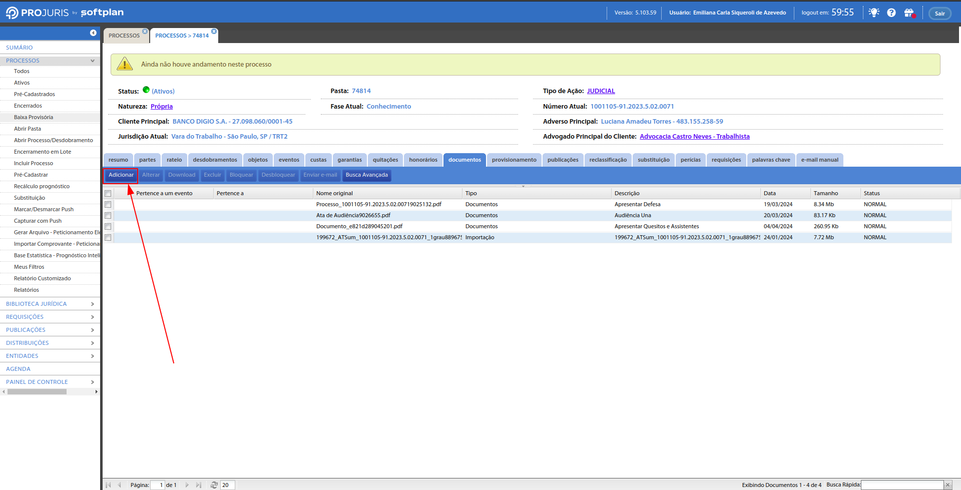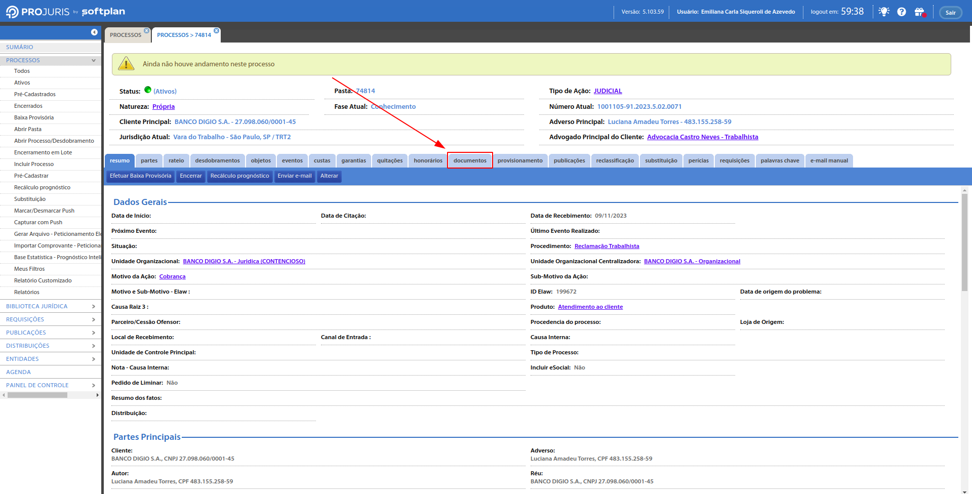 Ação: Realizada a pesquisa, acesse "Documentos". |