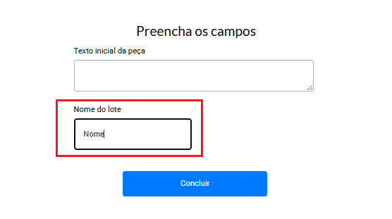 Aqui você pode nomear seu lote como preferir, e clicar em concluir: